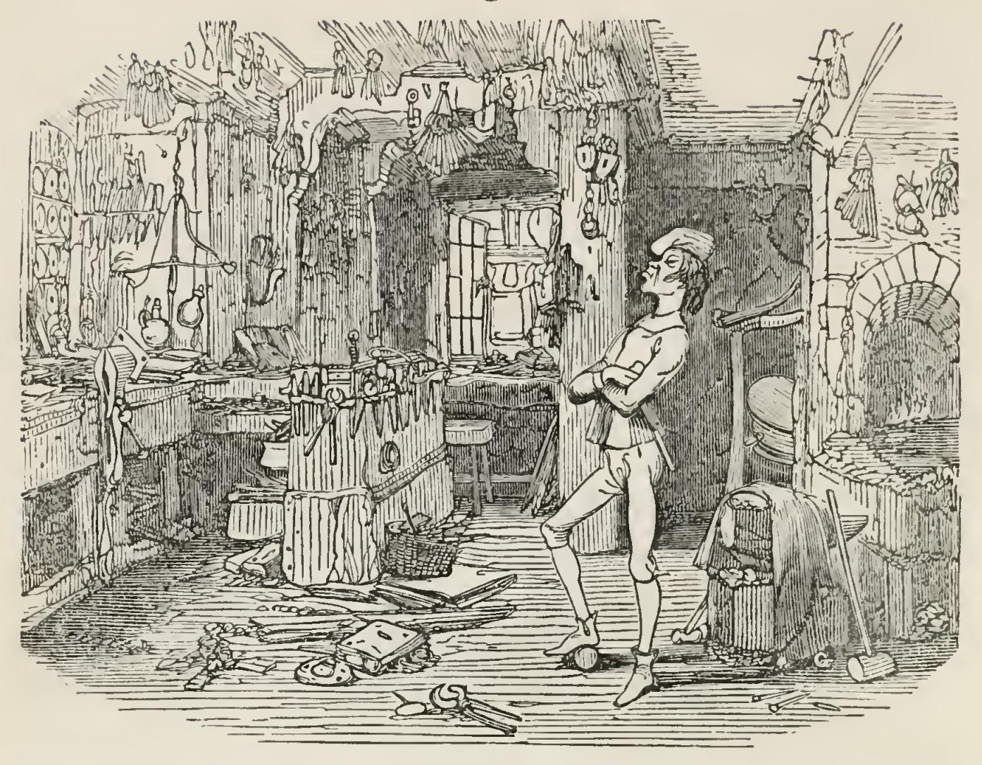 While Joe was absent on this errand, the elder Willet and his three companions continued to smoke with profound gravity, and in a deep silence, each having his eyes fixed on a huge copper boiler that was suspended over the fire. After some time John Willet slowly shook his head, and thereupon his friends slowly shook theirs; but no man withdrew his eyes from the boiler, or altered the solemn expression of his countenance in the slightest degree.