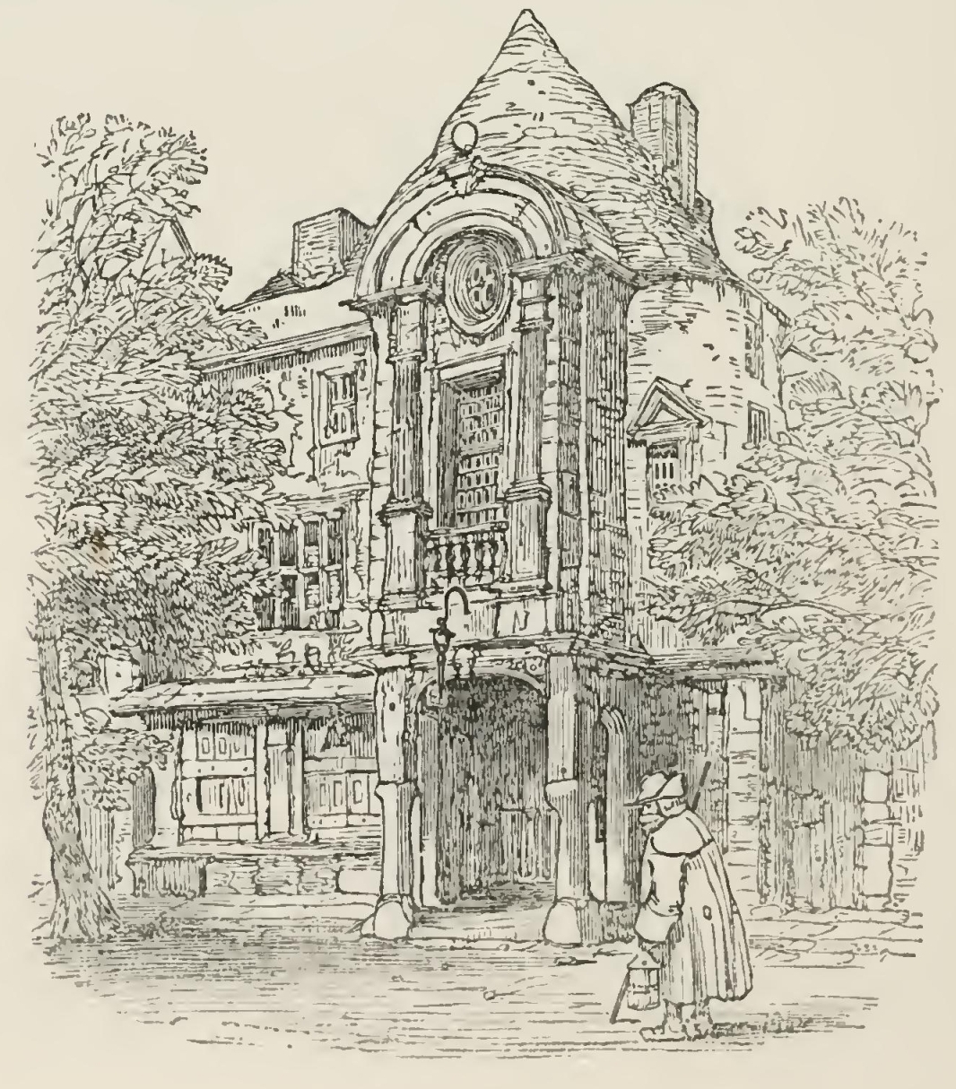 Whether these, and many other stories of the like nature, were true or untrue, the Maypole was really an old house, a very old house, perhaps as old as it claimed to be, and perhaps older, which will sometimes happen with houses of an uncertain, as with ladies of a certain, age. Its windows were old diamond-pane lattices, its floors were sunken and uneven, its ceilings blackened by the hand of time, and heavy with massive beams. Over the doorway was an ancient porch, quaintly and grotesquely carved; and here on summer evenings the more favoured customers smoked and drank—ay, and sang many a good song too, sometimes—reposing on two grim-looking high-backed settles, which, like the twin dragons of some fairy tale, guarded the entrance to the mansion.