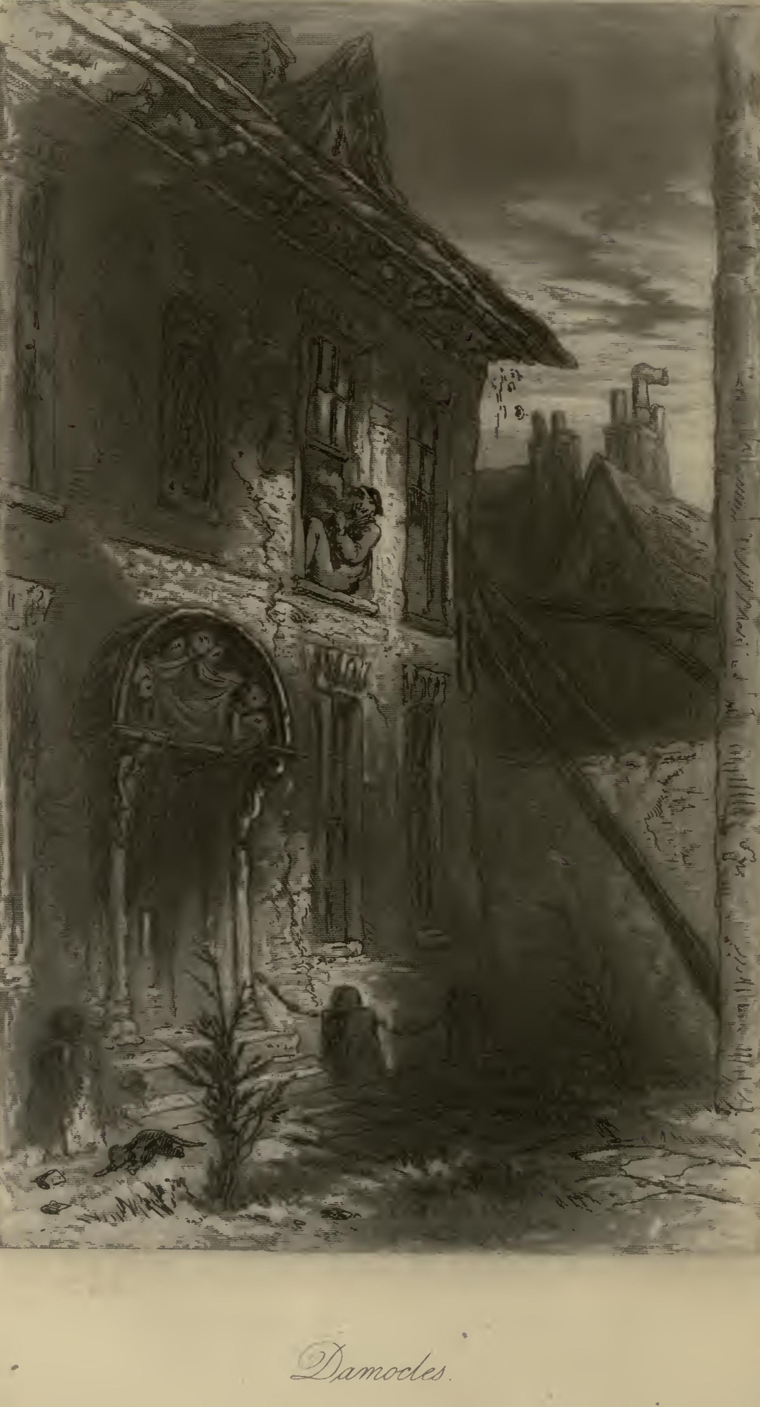 Blinds, shutters, curtains, awnings, were all closed and drawn to keep out the stare. Grant it but a chink or keyhole, and it shot in like a white-hot arrow. The churches were the freest from it. To come out of the twilight of pillars and arches—dreamily dotted with winking lamps, dreamily peopled with ugly old shadows piously dozing, spitting, and begging—was to plunge into a fiery river, and swim for life to the nearest strip of shade. So, with people lounging and lying wherever shade was, with but little hum of tongues or barking of dogs, with occasional jangling of discordant church bells and rattling of vicious drums, Marseilles, a fact to be strongly smelt and tasted, lay broiling in the sun one day.